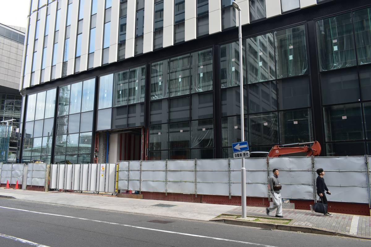 西側の歩道に面した仮囲いは簡易なものに変わっています。まだ内装工事は行われていると思いますがそろそろ終盤戦でしょう。
