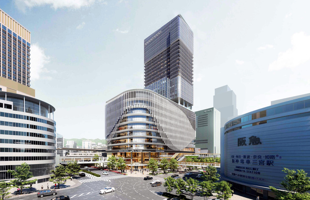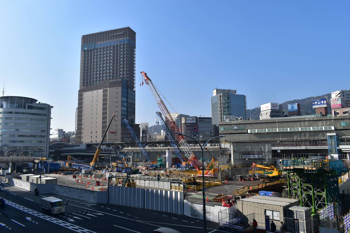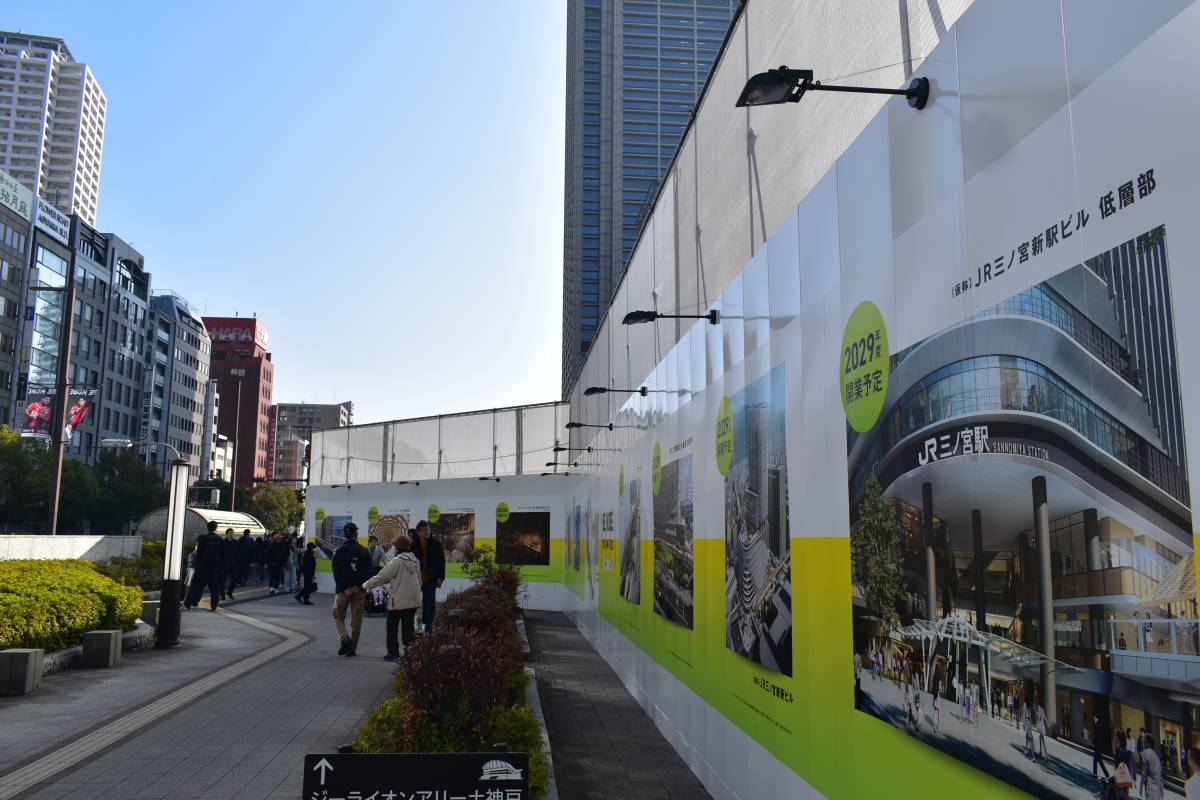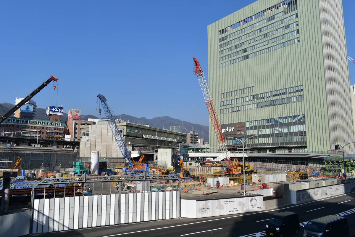 左奥に見えているのは先に建て替えが完了した阪急のビルです。JRの建て替えが完了することによって三宮はそれぞれの鉄道会社が超高層ビルを構えることになり、ターミナルとしての風格は一層高まります。