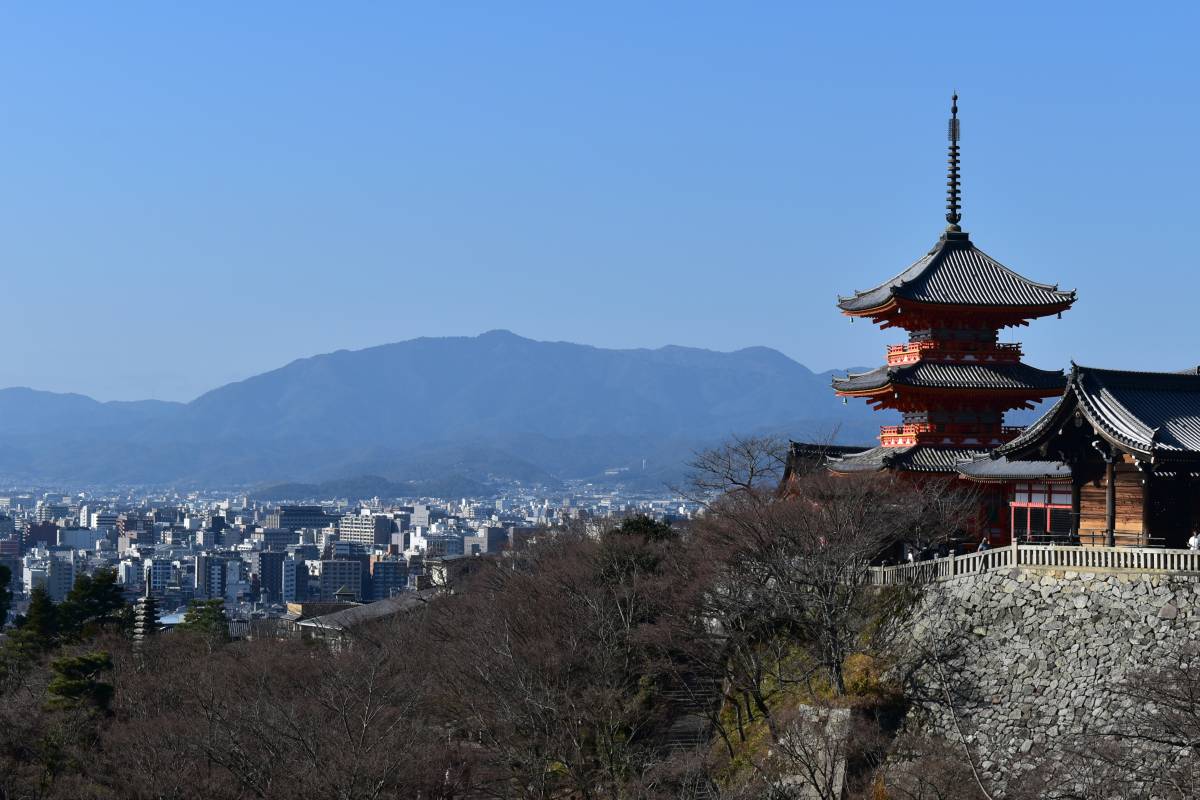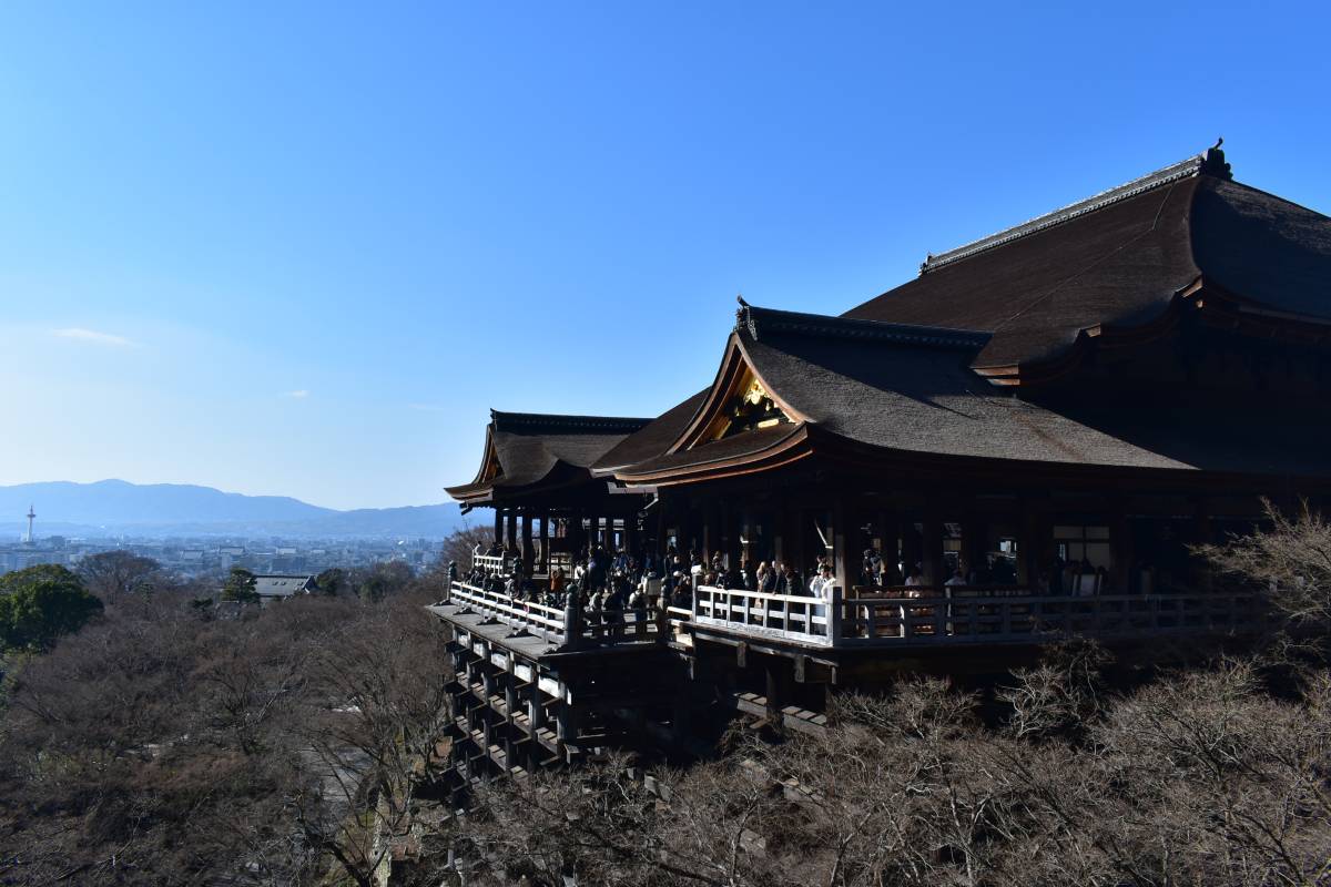 本堂を見ます。景色がいいですね。まさに京都という感じです。冬なので手前の木々が寂しいですが、夏は新緑が、秋は紅葉が見事です。