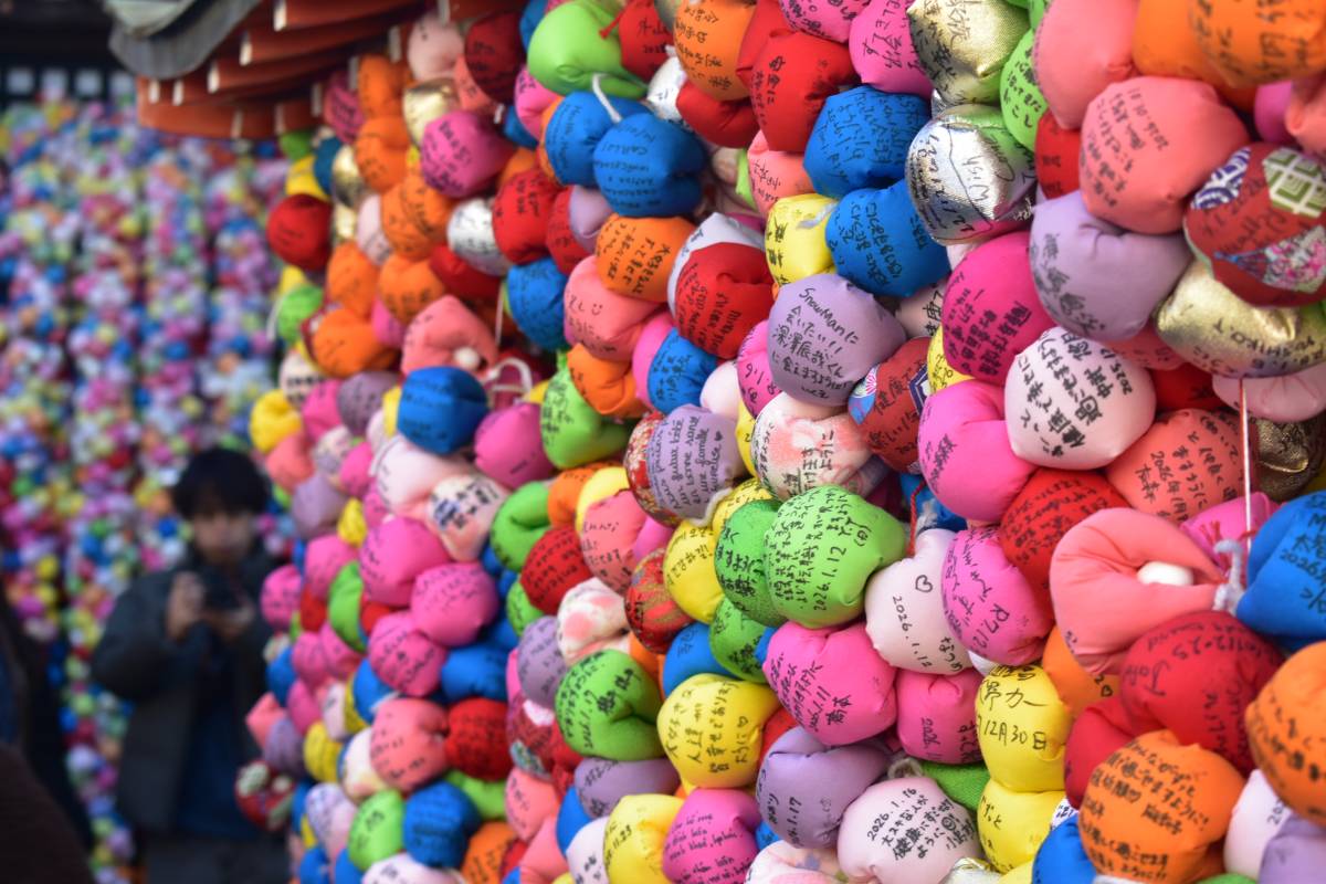 八坂庚申堂は正式には金剛寺庚申堂と言います。カラフルなこの写真は一度は見たことがあるのではないでしょうか。これは「くくり猿」といい、猿が手足をくくられて動けない姿を現しているそうです。走り回る猿を人間の欲望に例え、それをくくって抑えるのだそう。