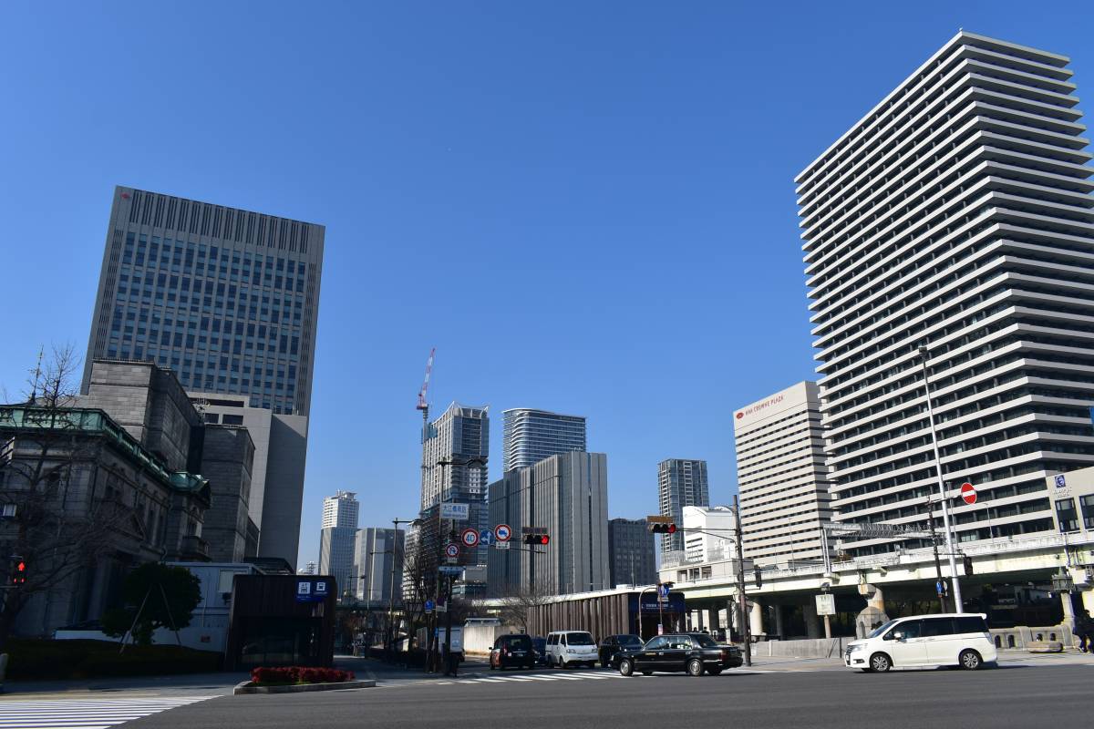近年大阪のビル密度は急速に高まっています。次に展望台の景色を紹介する大阪堂島浜タワー、新ダイビル、中央の東京建物はすべてここ10年程度でできた建物です。