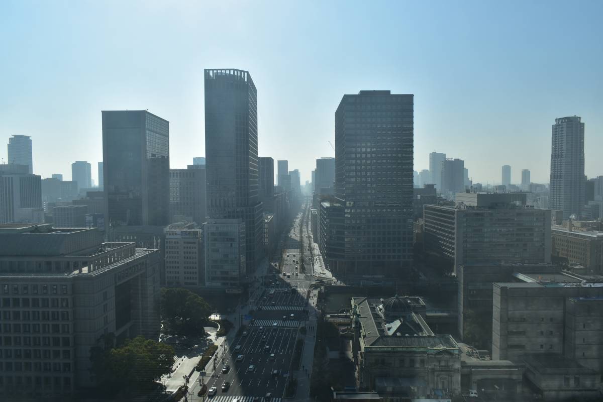堂島浜タワーから南側を見た様子です。御堂筋がまっすぐ見え高層ビル群が林立している姿が印象的です。大阪のビジネス街として貫禄があります。