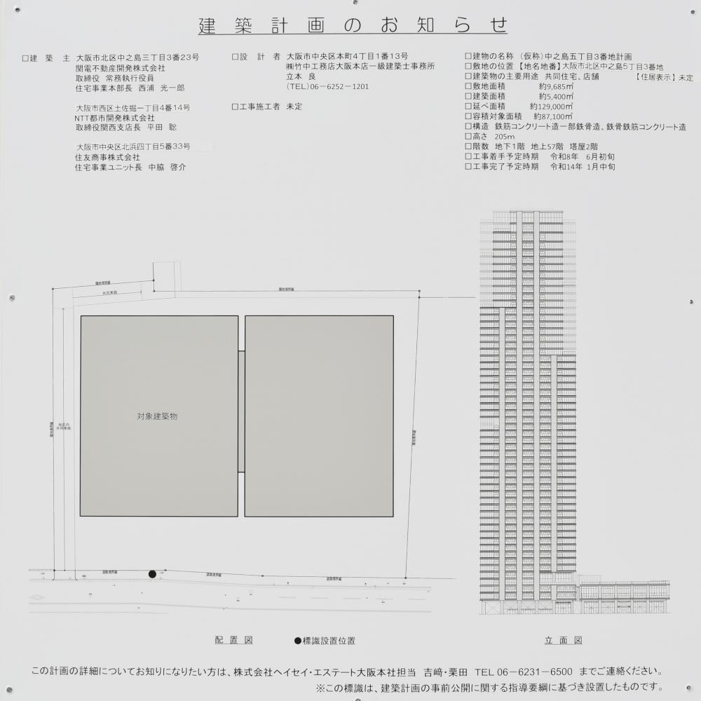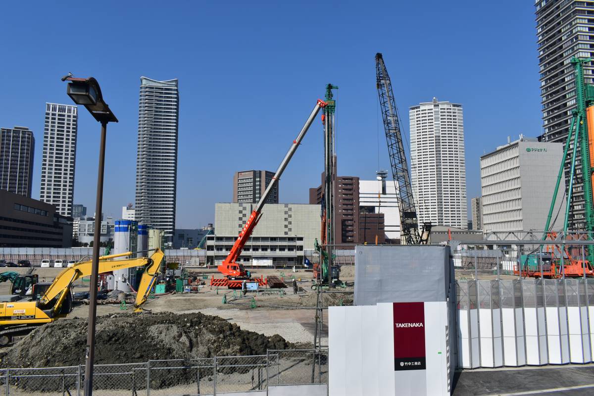 大阪らしく竹中工務店の看板が出ています。前回の神戸編でもお伝えしましたが、やはりここと大林組は強いです。今回紹介した中之島のように他の大手ゼネコンも入ってきてはいますが、梅田をはじめとするメインどころはやはり2社ががっちり抑えている印象です。