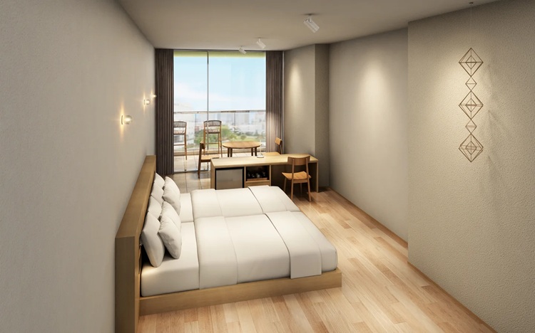 部屋は全部で24室です。比較的小規模ですが、これは妥当な設定だと思います。アクセスが微妙なこの地で巨大ホテルは難しく、それより普通のビジネスホテルなどとは一風変わった路線で小規模展開し、泊まってみたくなるホテルをつくる今回の取り組みはとてもいいと思います。