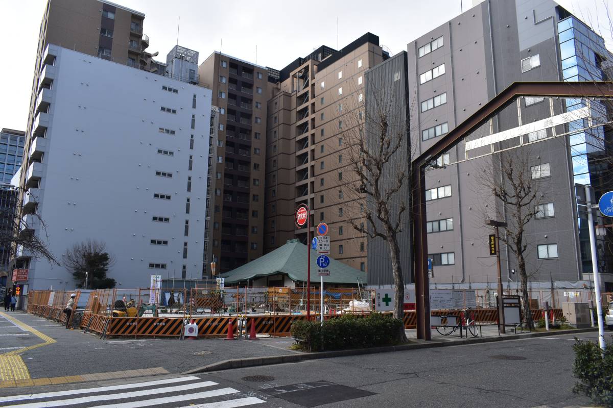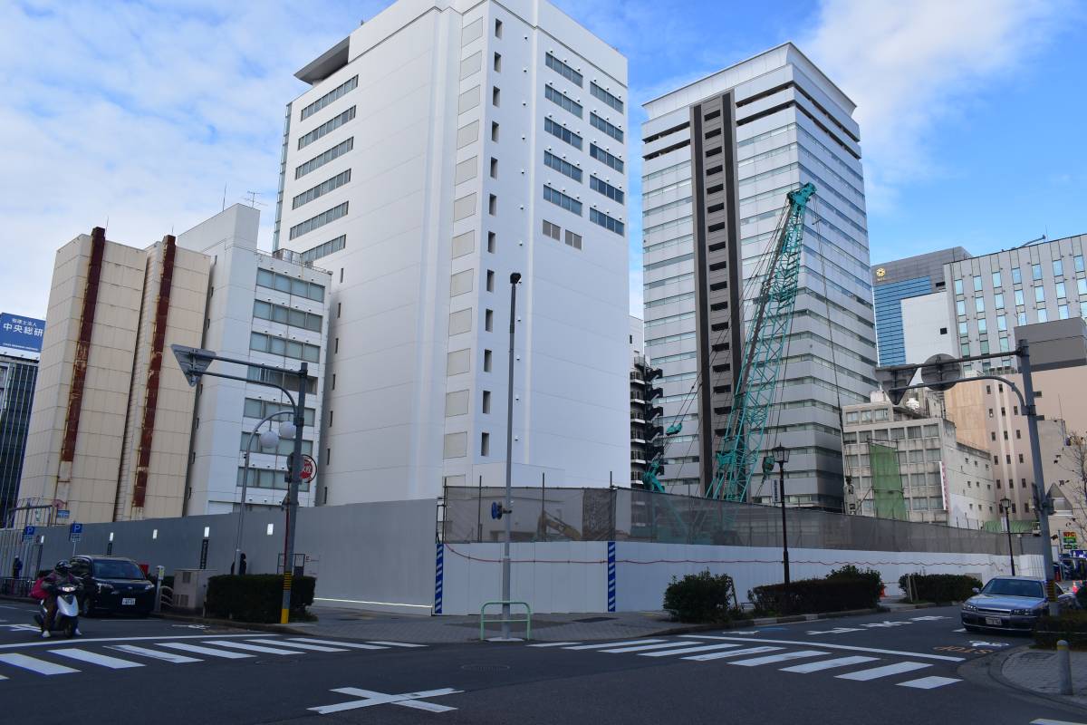 奥を見てもオフィスビルが建ち並ぶエリアなのがわかります。このビルはその業務集積をさらに強化する存在になりそうです。