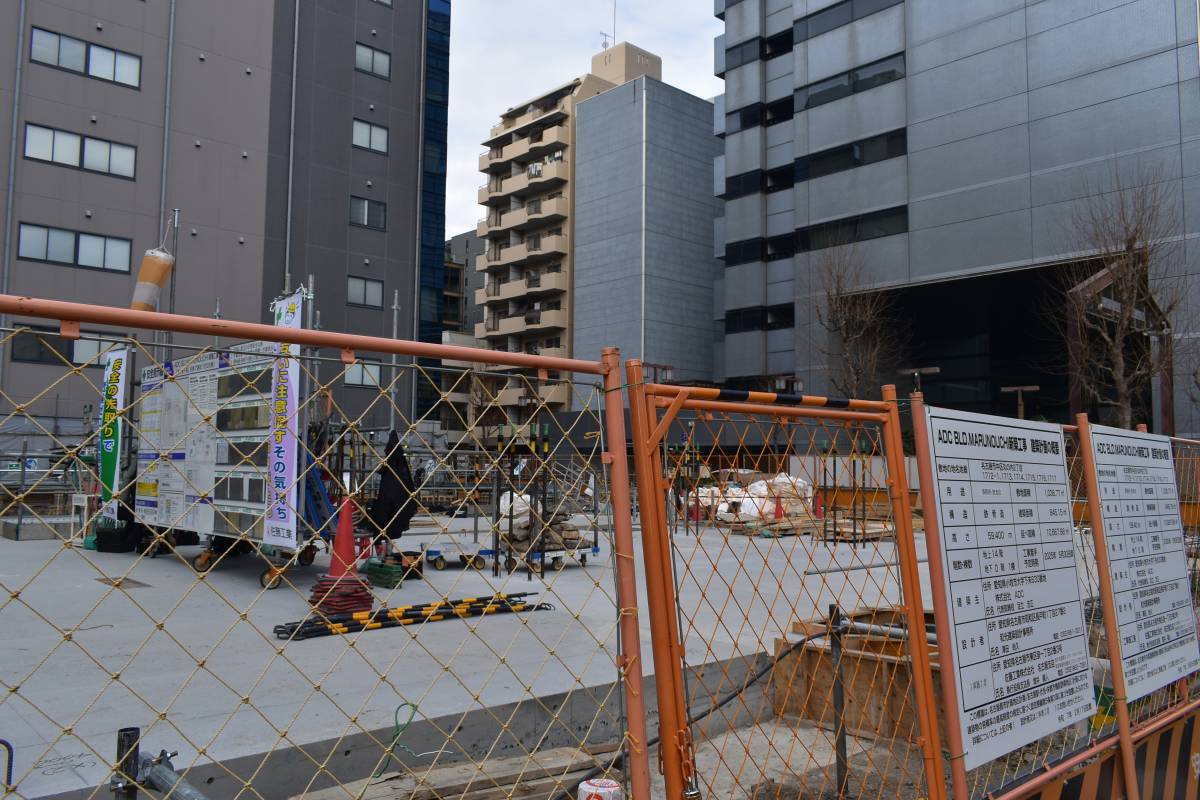 丸の内では桜通を挟んで2つのオフィスビルが建設中。ひとつは日銀の北で建設中の14階建てオフィスビル「ADC BLD. MARUNOUCHI」です。昨年から基礎工事が始まっていました。前回から半年ぶりの取材です。