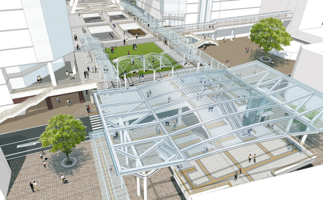 これで西口の整備はひと段落します。次は東口です。大きな広場が駅前に出現し、人が主役のウォーカブルな空間となる見込みで、2029年ごろをめどに進められています。
