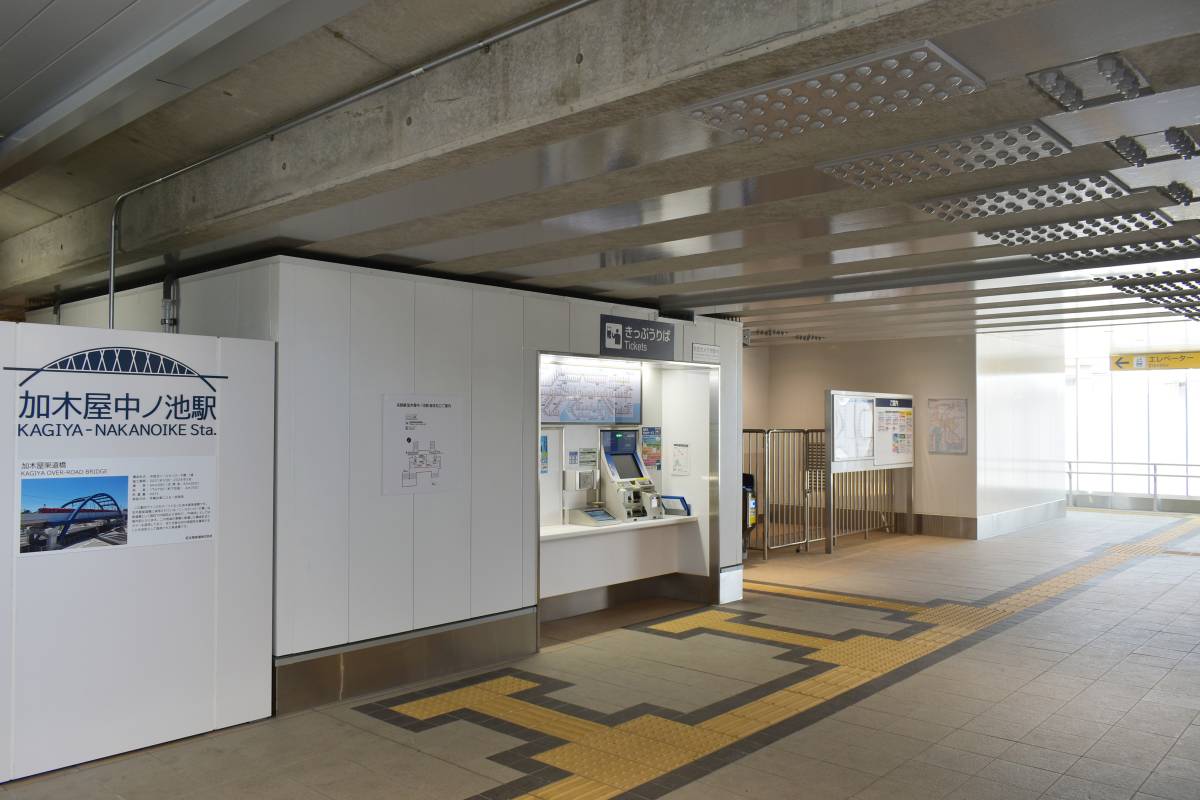 加木屋中ノ池駅は名鉄河和線の2年前にできた新駅です。高横須賀駅と南加木屋駅のほぼ中間に位置し、周辺の宅地開発とともに、西知多総合病院のアクセスとしても機能します。