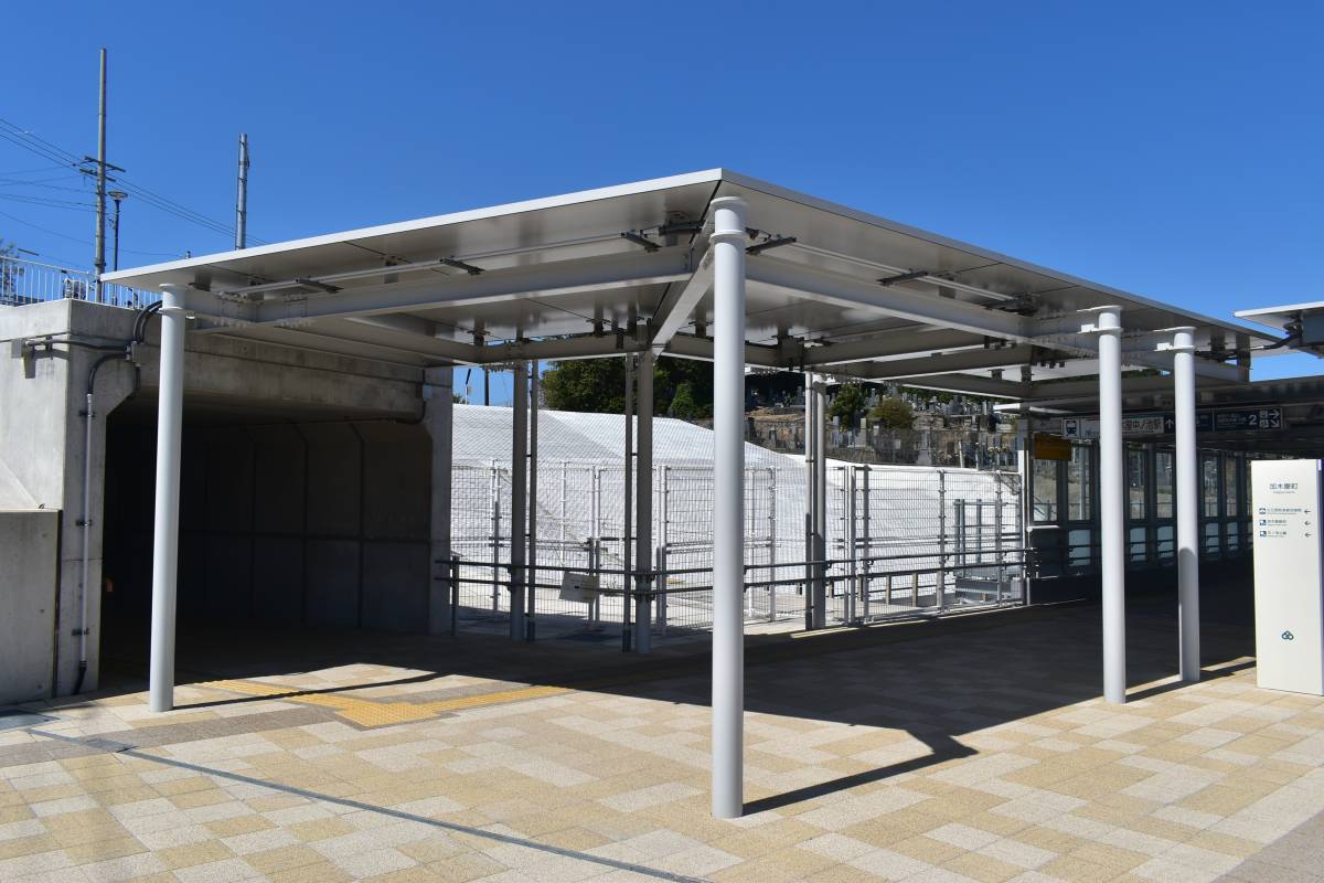 続いて北口。西知多総合病院への通路が完成しました。雨に濡れないように庇も設置済みです。