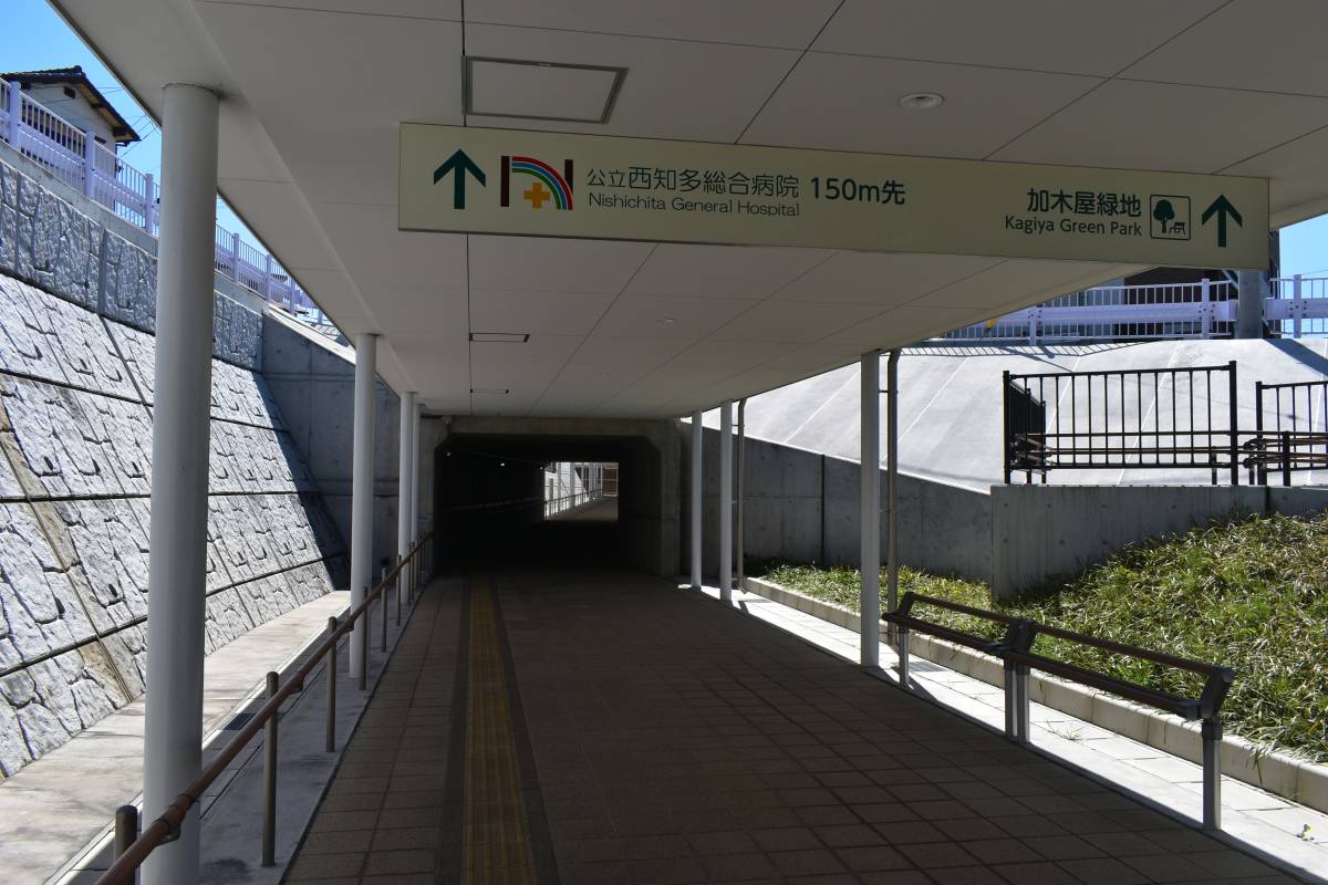 2年前には開業レポートをしました。その際にはまだ暫定という感じで、北口改札のみ使用していました。その後整備が続けられ、先月南口開発も供用開始。前回工事中だった西知多総合病院への通路も開通していました。