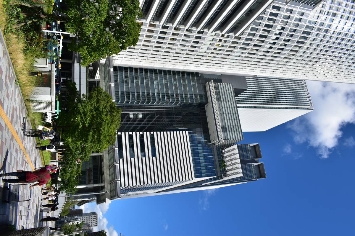 西口から見た様子です。こちらから見ると低層部がないので220mの高さ感をより味わうことができます。