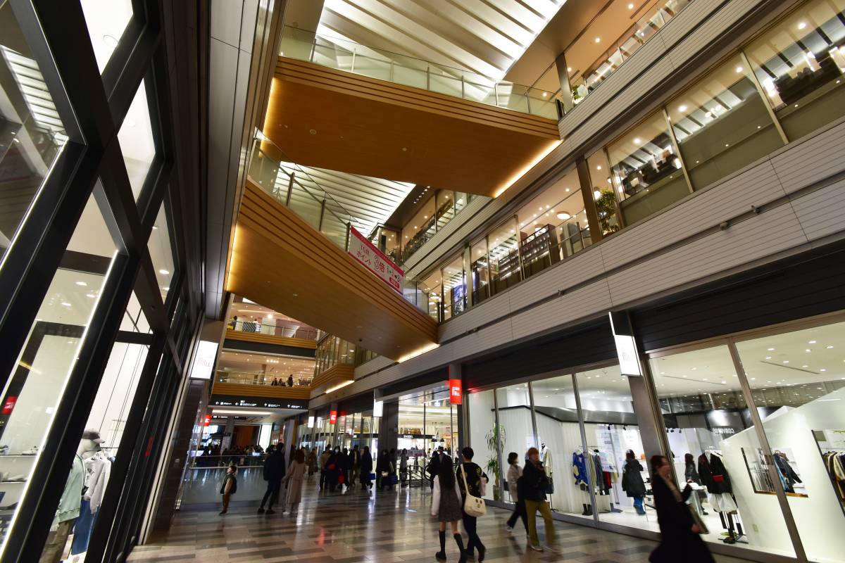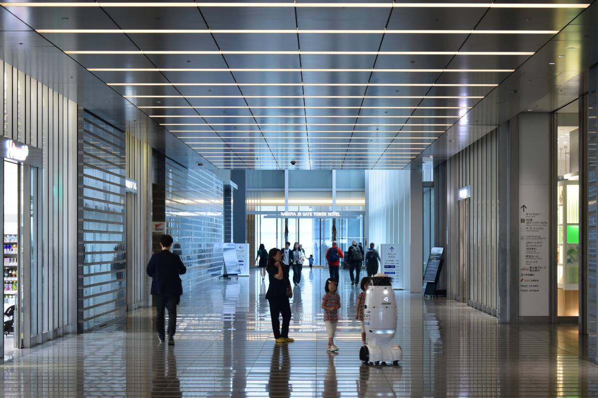 低層部の貫通通路です。タワーズガーデンからJRゲートタワーを通り、JPタワーまでつながっています。名古屋ターミナルビル建て替え以前は十分でなかった南北動線をビル内に広く確保した形です。名古屋駅方面から流れてくる大量の人で通路は常に賑わっています。